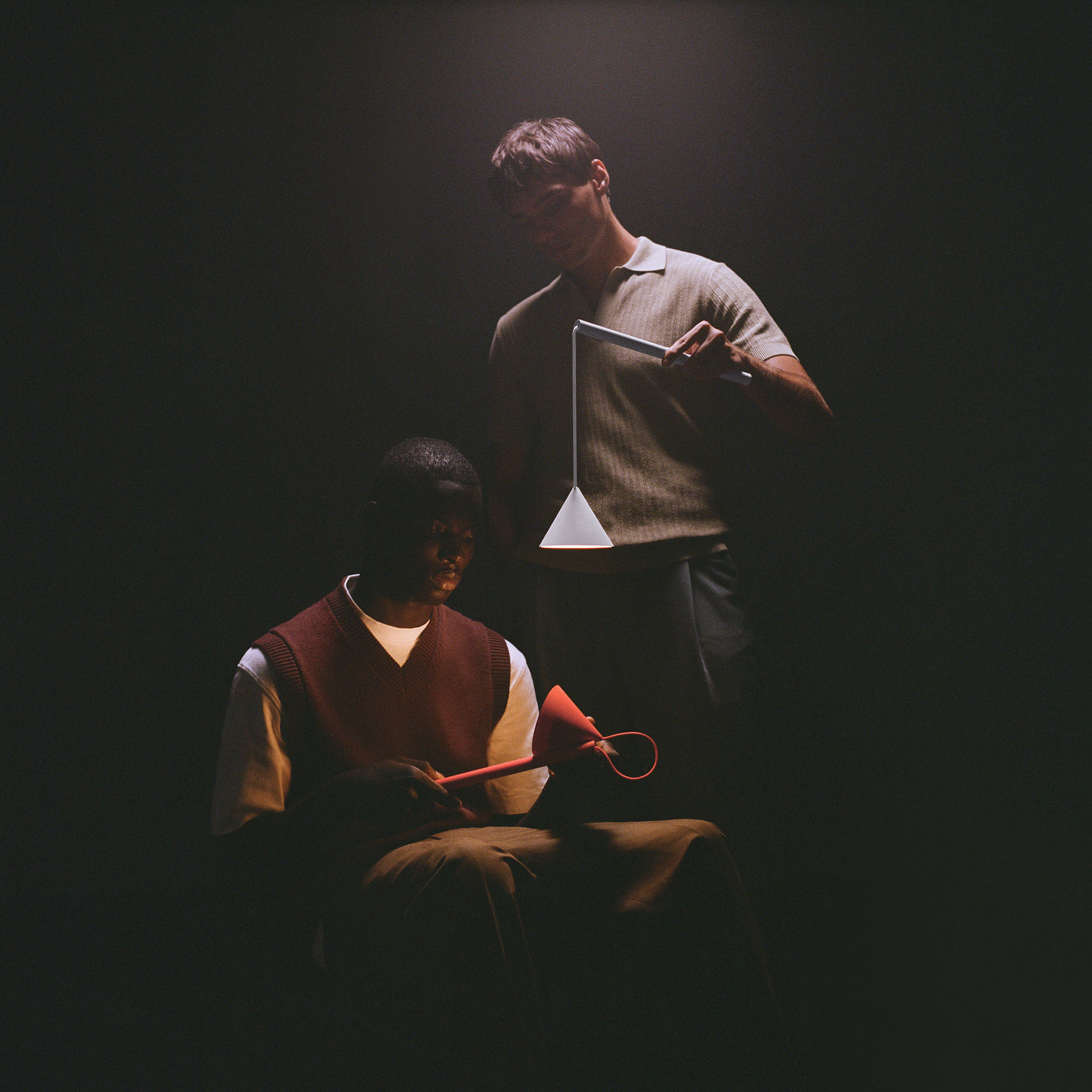 バッテリーをスチールパイプのステム内に格納する構造と、マグネット内蔵のシェードが組み合わさることで、ユーザーに寄り添った多様な使い方が可能になっています。またシェード、ステム、ベースが取り外せることで積み木のように組み合わせを楽しむことができます。 バッテリーをスチールパイプのステム内に格納する構造と、マグネット内蔵のシェードが組み合わさることで、ユーザーに寄り添った多様な使い方が可能になっています。またシェード、ステム、ベースが取り外せることで積み木のように組み合わせを楽しむことができます。 仕事に集中したいときも、リラックスしたいときも。照明の形を変えることで、その時々の気分やシーンにしなやかに馴染みます。 Alessi / WEBSITE