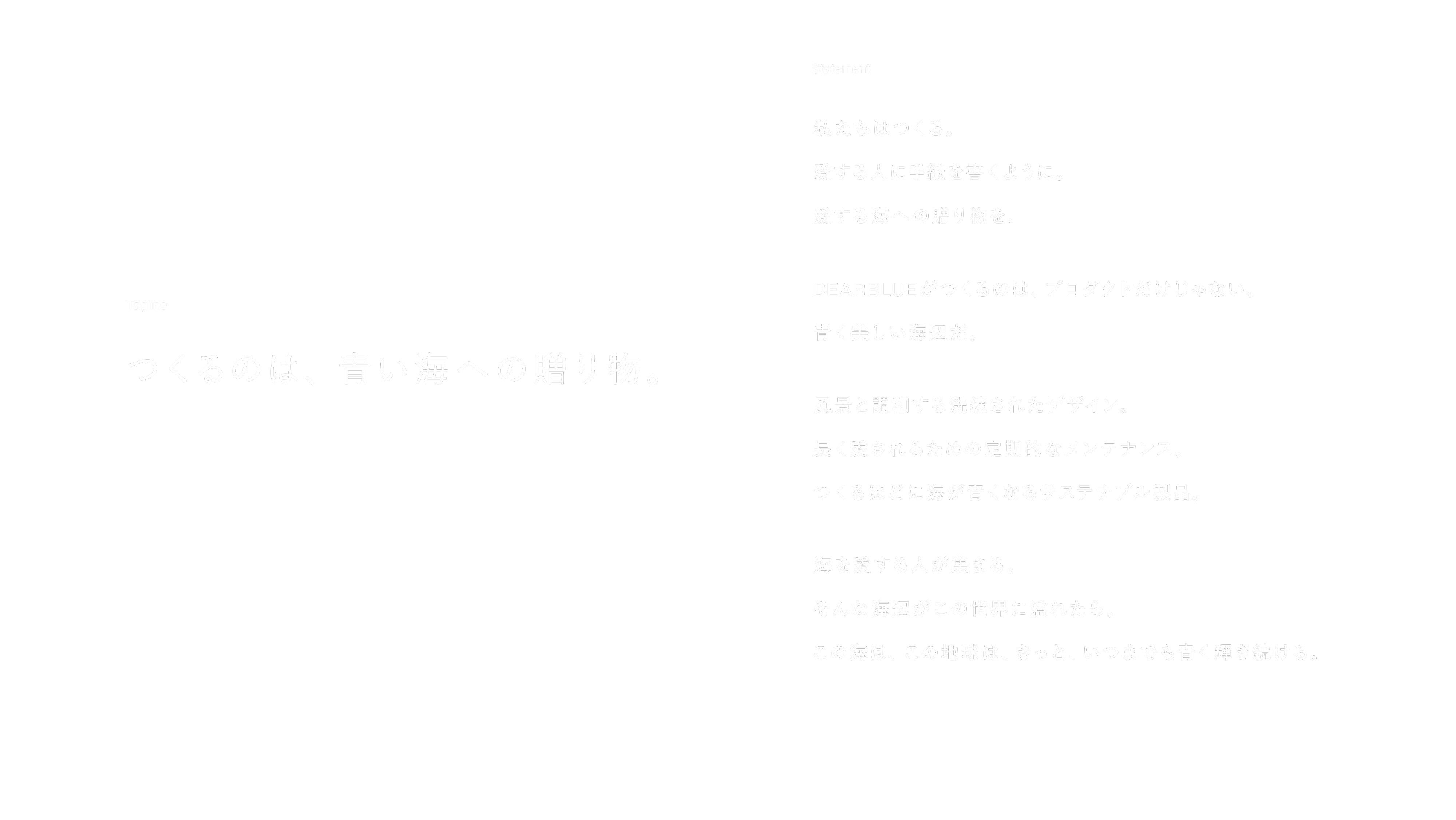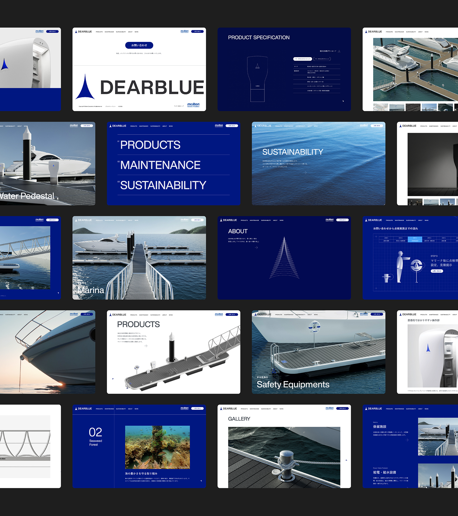 The main movie on the homepage symbolically features scenery from the Seto Inland Sea, where molten’s headquarters are located. This embodies the brand’s philosophy of living with the sea while conveying DEARBLUE’s determination to become a driving force for the future of marine-related industries from this region.