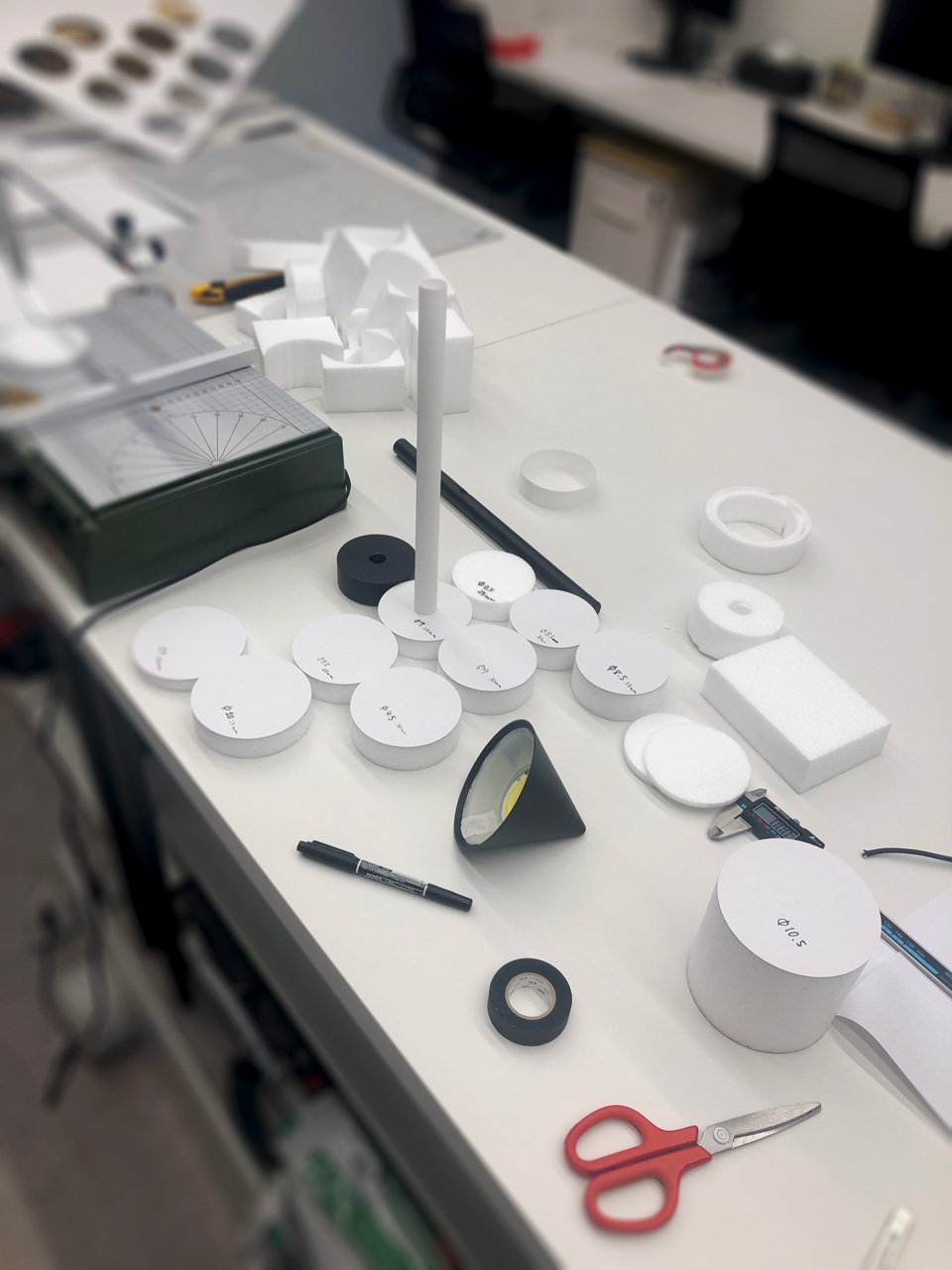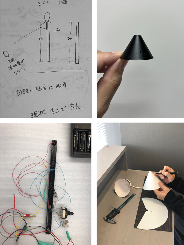 The design concept of “Flag” is characterized by its flexible functionality, which adapts to various uses. Throughout the rapid prototyping process, we balanced the ideal form with the practical constraints of the structure, such as the magnetic attachment between the shade and the body, the material and strength of the cord, and the weight and size of the battery.